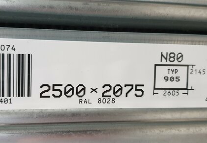 - Größe: Baurichtmaß/Bestellmaß 2500 x 2075 mm, Farbe: Terrabraun RAL 8028