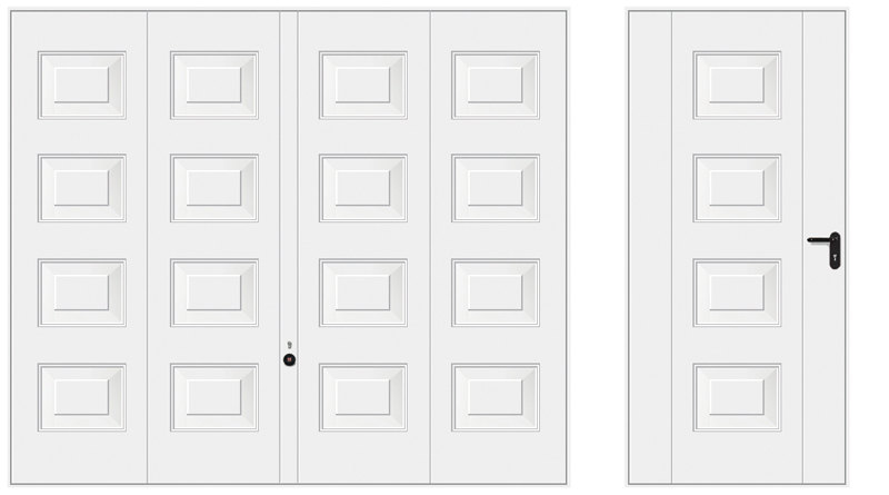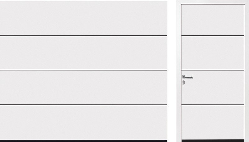 Wählen Sie aus fünf Tormotiven Ihr Wunschtor – von den eleganten M- und L-Sicken, über die klassische Kassettenansicht bis zu den exklusiven Design-Motiven D- und T-Sicken. Ergänzen Sie dieses um die passende Nebentür.