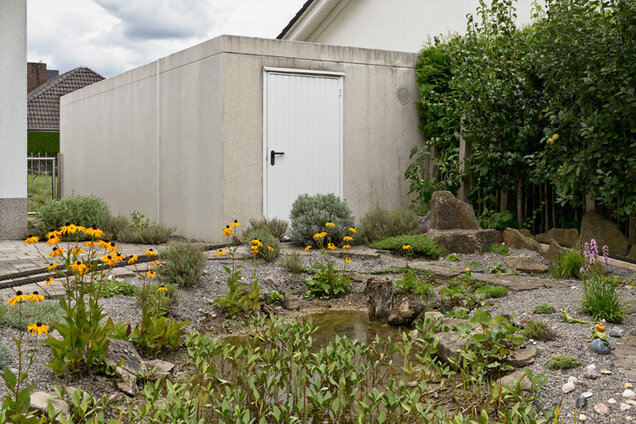Die Bilder zeigen eine fast 50 Jahre alte Betonfertiggarage der ersten Generation (Projekt 1) sowie eine ca. 20 Jahre alte Garage mit Anbau (Projekt 2) vor und nach einer Rundum-Modernisierung.