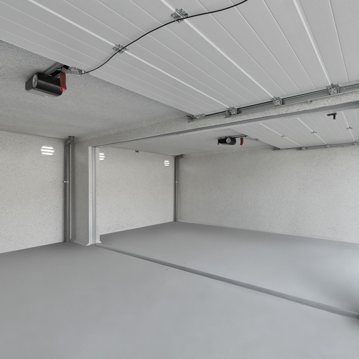 Wenn ausreichend Platz auf Ihrem Grundstück besteht, bietet sich der Bau einer K-PLUS-Doppelgarage an. In Verbindung mit der Ausstattungsvariante Mittelwandaussparung bekommen Sie nicht nur den doppelten Platz, sondern es wird Ihnen auch ein bequemes Ein- und Ausladen Ihrer Fahrzeuge ermöglicht. Ein Blick in die Garagen zeigt deutlich: