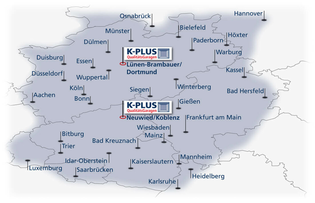 Unser Vertriebsgebiet umfasst die Bundesländer Nordrhein-Westfalen, Rheinland-Pfalz, Hessen und Saarland sowie die angrenzenden Regionen von Niedersachsen, Baden-Württemberg, Bayern und der Beneluxstaaten.
